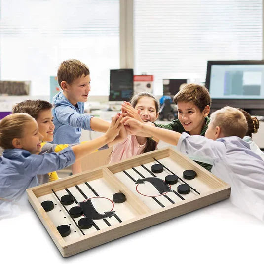 El Hockey de Mesa de Madera (también conocido como Fast Sling Puck o Air Hockey de mesa) combina velocidad, destreza y diversión en un juego compacto que garantiza risas, competencia sana y momentos inolvidables.