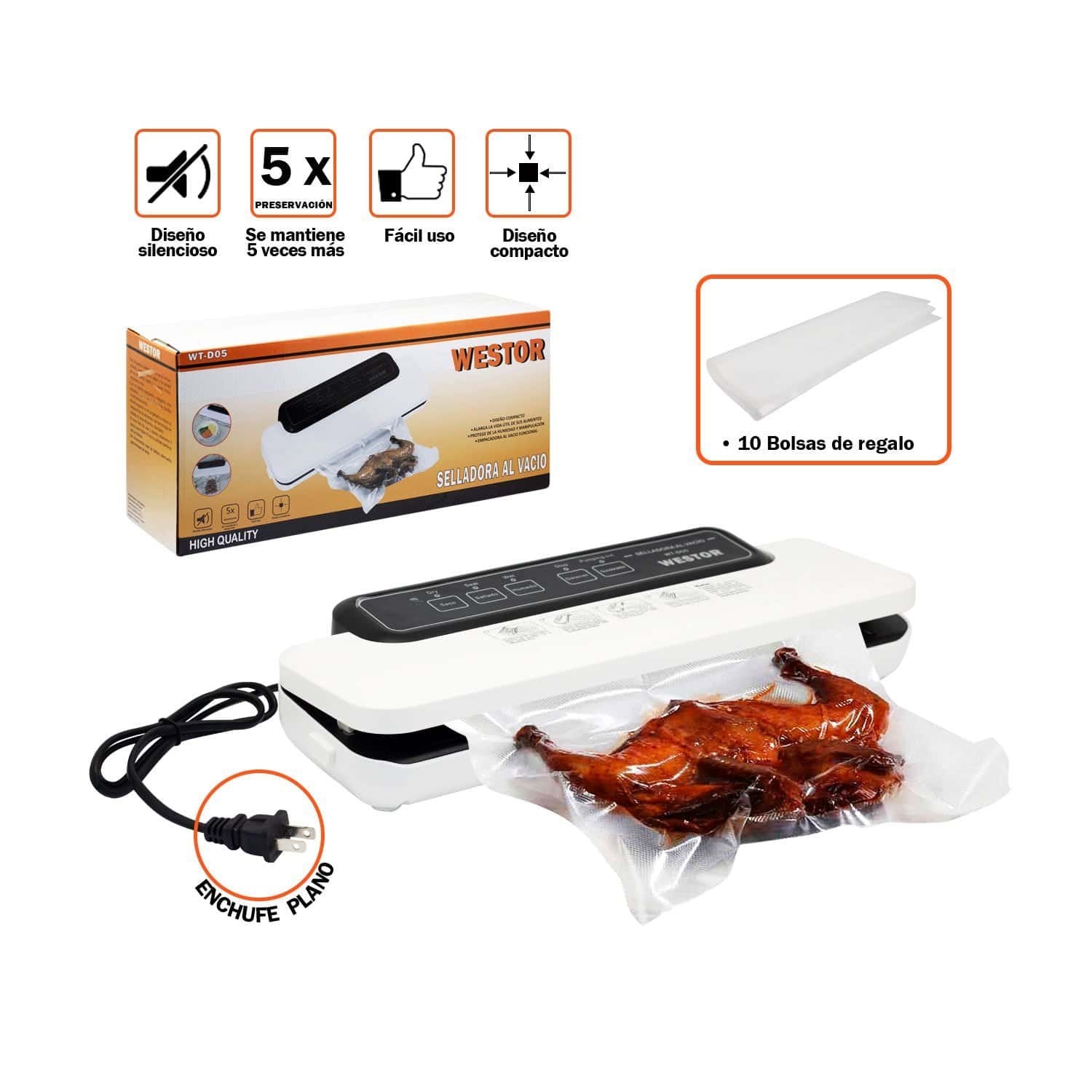 La Selladora al Vacío WESTOR WT-D05 es la solución ideal para mantener tus alimentos frescos, evitar la oxidación y conservar el sabor y nutrientes por mucho más tiempo, con un sellado rápido, seguro y profesional desde casa.